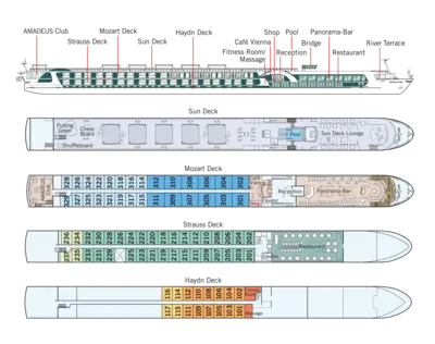 Designed with both style and practicality in mind, our Haydn Deck cabins offer a peaceful and well-equipped space for your journey.
