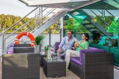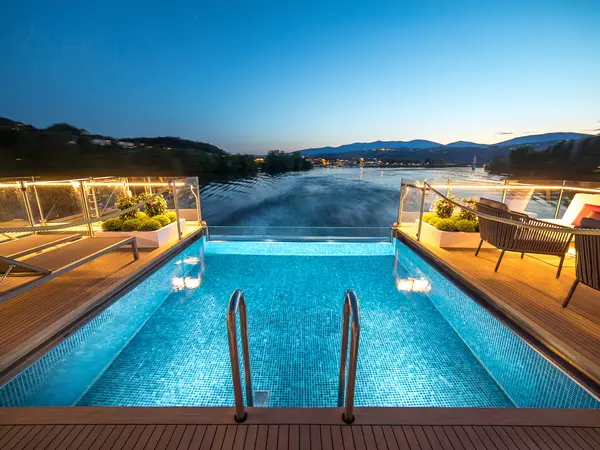 Soft pink and lavender accents set the stage for what unfolds just outside your panoramic window: Collections of yellow Provençal cottages with red tiled rooftops and stone walls, verdant valleys carpeted with lavender fields and vineyards. AMADEUS Provence promises fascinating journeys into the heart of Avignon and Arles and the renowned Le Camargue, the French delta. In the infinity pool, float where blue meets blue as water blends into the river’s horizon. Enjoy a drink at the Lido Bar, unwind on the River Terrace or in the fitness studio, or indulge in a pampering massage. At the day’s end, you’ll realize AMADEUS Provence is a taste of French living at its finest.