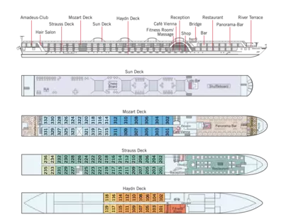 Designed with both style and practicality in mind, our Haydn Deck cabins offer a peaceful and well-equipped space for your journey.