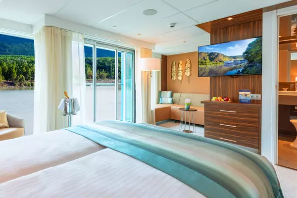 These staterooms feature the AMADEUS Signature Bed (available as a double or twin), a drop-down panoramic window for uninterrupted river views, a spacious bathroom with a walk-in shower and premium Rituals® bathing products, walk-in wardrobe, flat-screen TV, individual climate control, well-stocked minibar, in-room safe, hair dryer, and direct dial telephone — ensuring a comfortable and refined travel experience.
