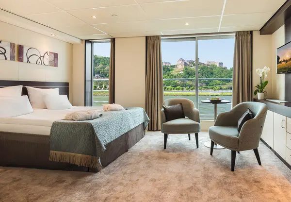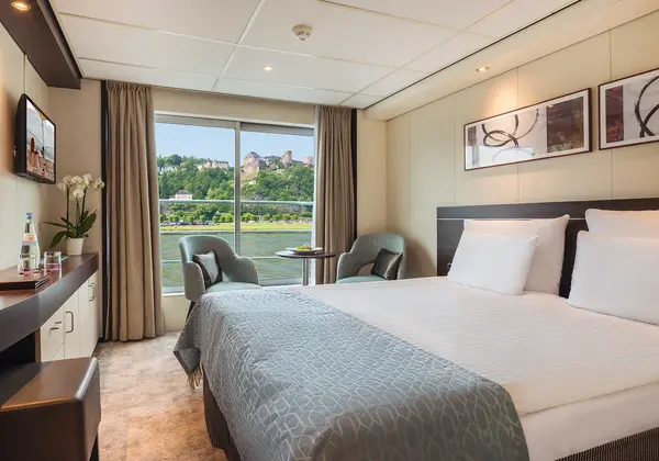 These staterooms feature the AMADEUS Signature Bed (available as a double or twin), a French balcony, a spacious bathroom with shower and premium Rituals® bathing products, ample clost space, flat-screen TV, individual climate control, in-room safe, hair dryer, and direct dial telephone — ensuring a comfortable and refined travel experience.