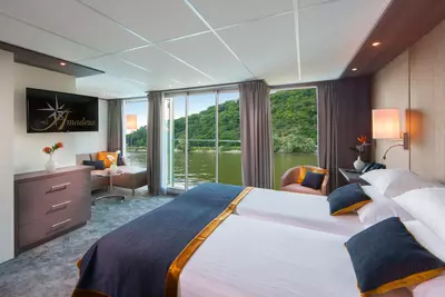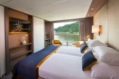 These staterooms feature the AMADEUS Signature Bed (available as a double or twin), a drop-down panoramic window for uninterrupted river views, a spacious bathroom with a walk-in shower and premium Rituals® bathing products, walk-in wardrobe, flat-screen TV, individual climate control, in-room safe, hair dryer, well-stocked minibar, and direct dial telephone — ensuring a comfortable and refined travel experience.