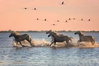 Immerse yourself in the Camargue, which is like a small country unto itself. To preserve the natural beauty of this landscape, the area was designated as a botanical-zoological nature reserve in 1927 and 1970. The Camargue is home to an astonishing array of wildlife, including semi-wild bulls, the famous Camargue horses, and a variety of bird species. At the marvelous site of Saintes-Maries-de-la-Mer, you can admire the mouth of the Rhône as it flows into the Mediterranean Sea.