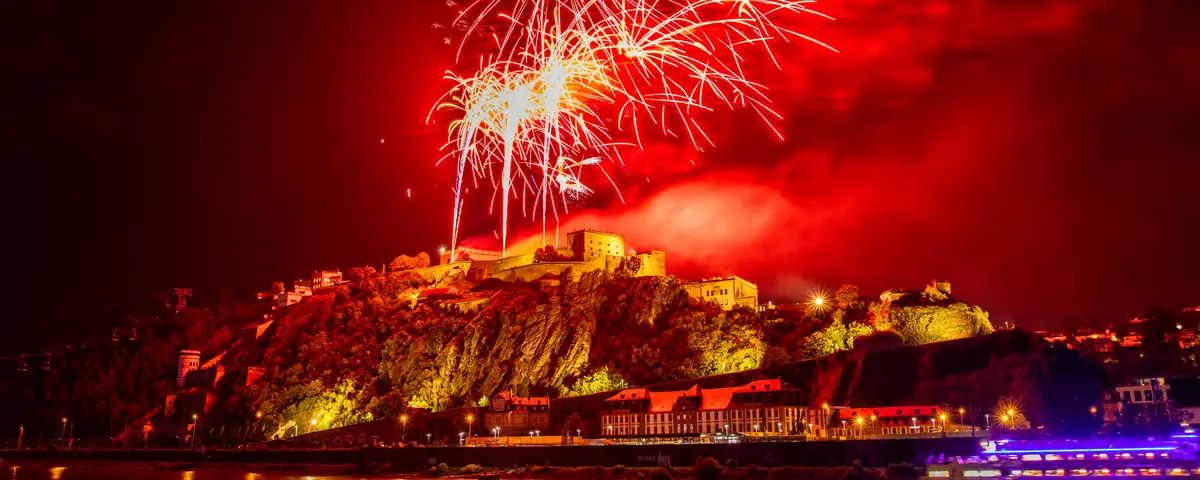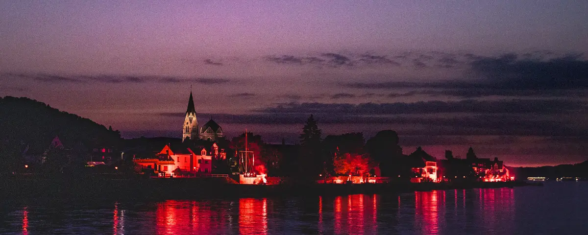 The highlight of this trip is a stunning pyrotechnic display featuring colorful fountains, Catherine wheels and crackling comets. Enjoy the spectacle of the romantic Rhine valley bathed in the glow of 800 red lights and magnificent hilltop firework displays. The opening fireworks accompany the start of the boat parade, which provides some 22,000 passengers with mesmerizing views of the illuminated castles, palaces and riverside promenades.